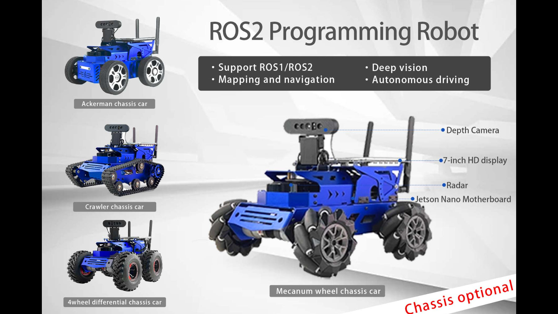AI Robot Kit with Rplidar A2 Radar ROS programmable Smart Tank Car for Jetson Nano 4GBXiaoR GEEK
